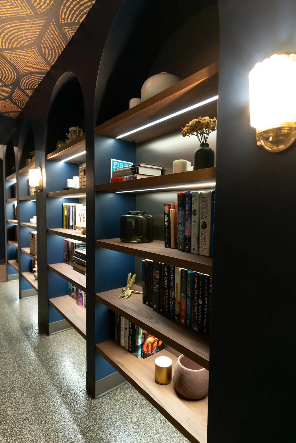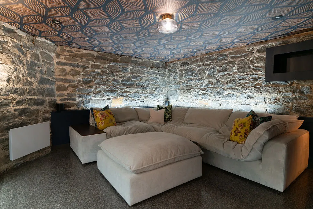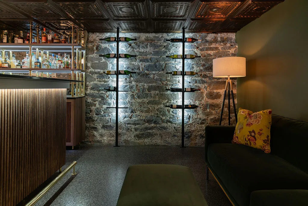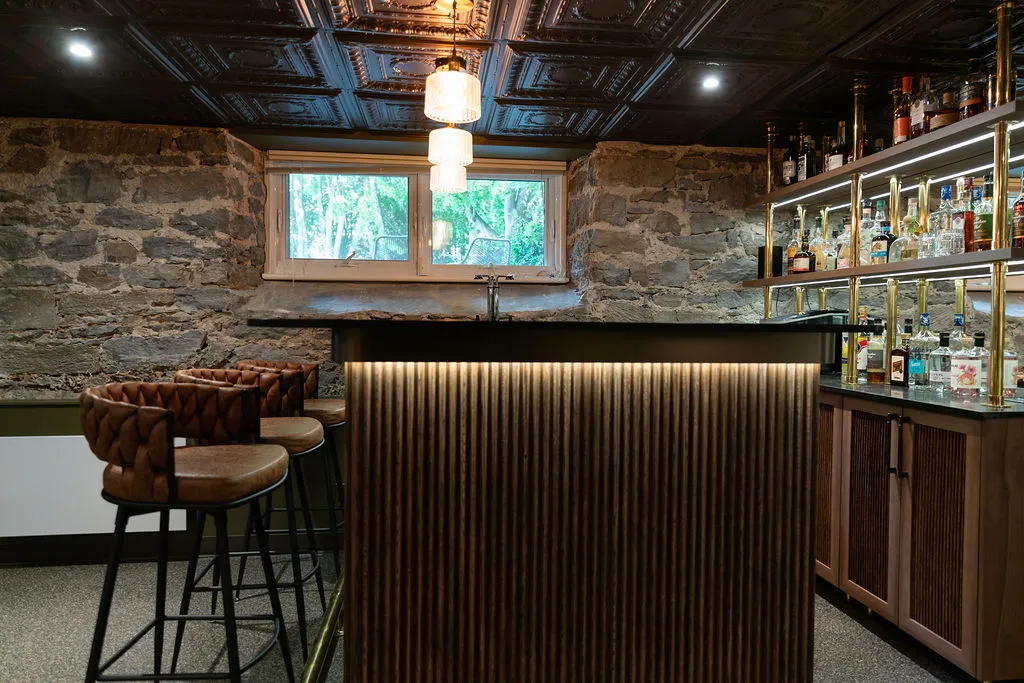 Aménagement d’un espace bar au cachet unique, où la pierre naturelle, l’éclairage sur mesure et les matériaux nobles se rencontrent pour créer une ambiance chaleureuse et raffinée. Un projet qui allie caractère, fonctionnalité et souci du détail.