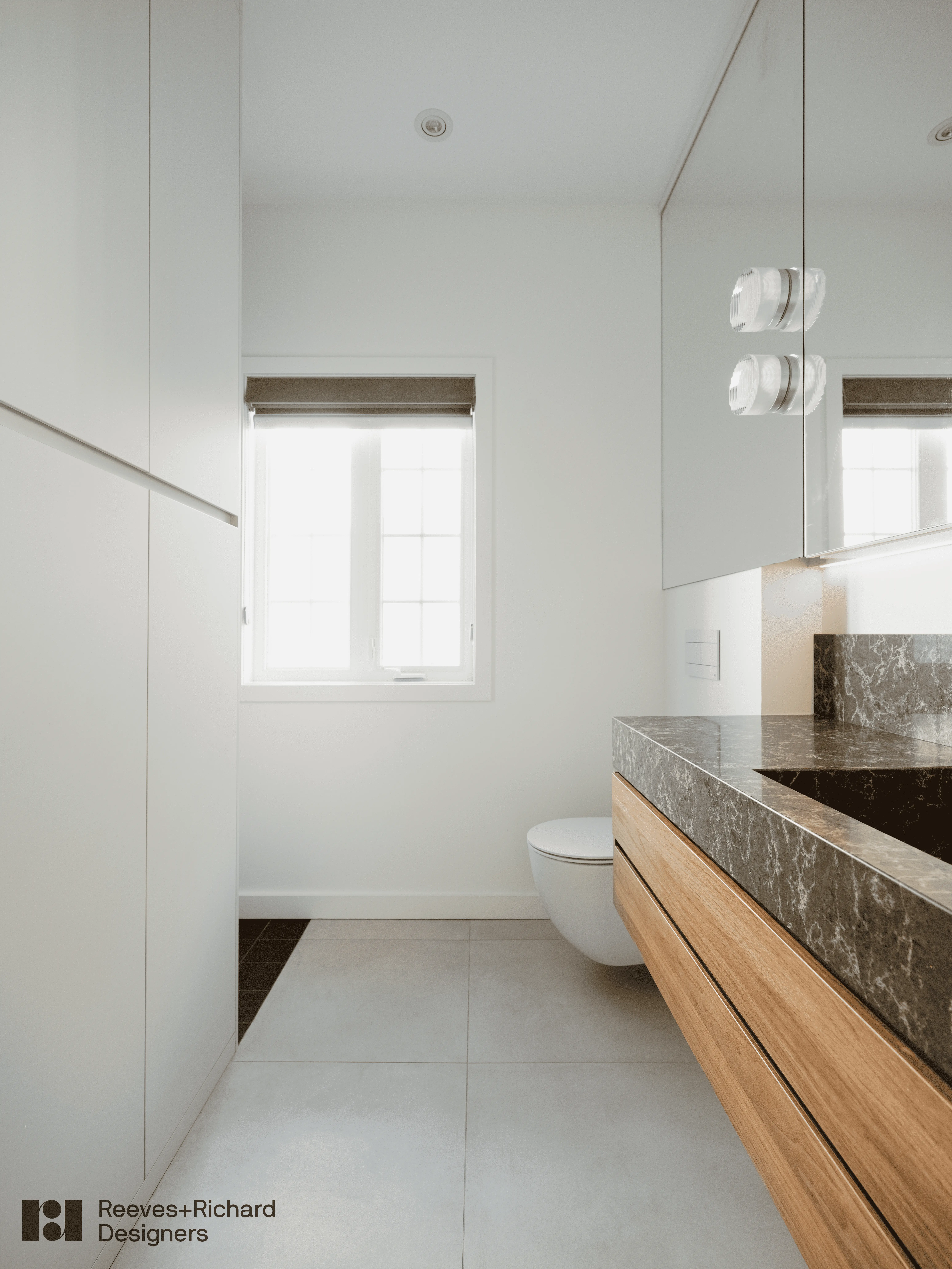 Rénovation d’une salle de bain au style épuré, mettant l’accent sur la détente, la simplicité et l’élégance. L’agencement soigné, les matériaux contemporains et l’éclairage doux créent un espace apaisant, fonctionnel et durable.